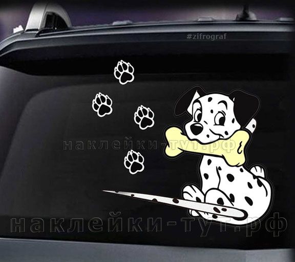 Представляем вам нашу новую продукцию, но на рынке хорошо известную "живые" или "подвижные" наклейки на заднее стекло и дворник автомобиля - "ДАЛМАТИНЕЦ" от нашей дизайн-студии Zifrograf. Популярность этой наклейки растет с каждым месяцем, заказав её вы получаете 6 наклеек (пес, его хвост и 4 лапки) вырезанных по контуру. Наклейка в виде "хвоста" приклеивается на дворник, а фигура далматинца и 4 лапки на заднее стекло авто. После монтажа при включении дворника собака-наклейка на стекле авто начнет махать хвостом как "живая". Не забудьте обезжирить поверхности перед тем как будете клеить стикеры, вариант оформления смотрите в фотографиях на этой странице. Не забудьте обезжирить поверхности перед тем как будете клеить стикеры, вариант оформления смотрите в фотографиях на этой странице. ВНИМАНИЕ! Пользоваться дворником (включать его) желательно не раньше через месяц после того как вы приклеили эту наклейку с собакой, чтобы не повредить её щеткой и дать клею как следует "схватиться", особенно, когда стекло сухое или снимите на это время щетку дворника.