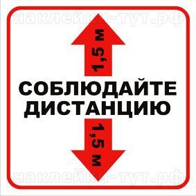 Купить наклейки "Соблюдайте дистанцию 1,5 м" для магазинов и фирм, предприятий транспорта и организаций, медицинских учреждений, войсковых частей, торговых центров в период эпидемии коронавируса COVID-19 для соблюдения мер безопасности можно у нас любым тиражом и размером. Наклейки для профилактики при карантине и пандемии.
