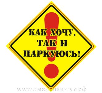 Наклейка "Как хочу, так и паркуюсь!" - для амбициозных и уверенных в себе автомобилистов, с полным КАСКО своего авто от любой неприятности. В общем тем, кто паркуется как хочет, где захочет и как придется!...