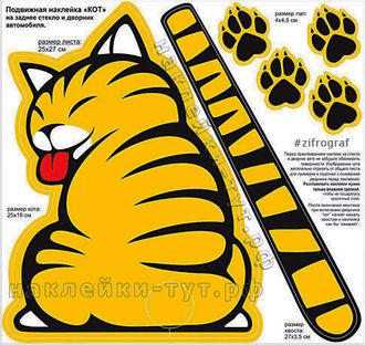 Предлагаем вам нашу новую продукцию, но на рынке хорошо известную "живые" или "подвижные" наклейки на заднее стекло и дворник автомобиля - "ЖЕЛТЫЙ КОТ" от нашей дизайн-студии Zifrograf. Популярность этой наклейки растет с каждым месяцем, заказав её вы получаете набор из 6 наклеек (кот, его хвост и 4 лапы) вырезанных по контуру. Наклейка в виде "хвоста" приклеивается на дворник, а фигура кота и 4 лапки на заднее стекло авто. После монтажа при включении дворника кот-наклейка на стекле автомобиля начнет махать хвостом как "живой". Не забудьте обезжирить поверхности перед тем как будете клеить стикеры, вариант оформления смотрите в фотографиях на этой странице. ВНИМАНИЕ! Пользоваться дворником (включать его) желательно не раньше через месяц после того как вы приклеили эту наклейку с котом, чтобы не повредить её щеткой и дать клею как следует "схватиться", особенно, когда стекло сухое или снимите на это время щетку дворника.