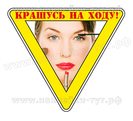 Наклейка на машину "Крашусь на ходу!" (от 40 руб.) для женщин, дам и леди за рулем собственного авто. Заставьте улыбаться мужчин, которые едут за вами и в то же время этот знак не позволит им расслабиться в дороге.