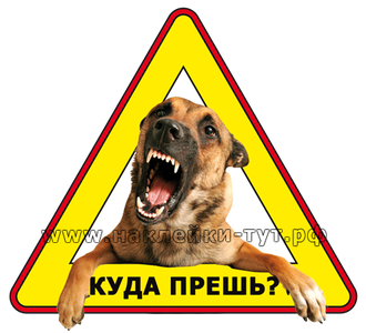 Наклейка - знак на авто "Куда прешь?" (от 50 руб.) со злой собакой - для тех, кто устал каждый день кричать эту фразу в пробках или на парковках, а злобный оскал этого пса - расcтавит приоритеты. Реально злая наклейка с овчаркой. Купить знак наклейку "Куда прешь?" можно в размере: 15х15х15 см.
