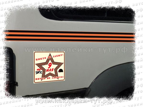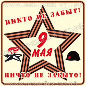 Наклейка на машину "НИКТО не забыт, НИЧТО не забыто!" (от 5 р. опт) из серии "День Победы - 9 Мая!", в честь победы над фашистской Германией, с георгиевской лентой и красной звездой. Мы помним их подвиг, а в живых их с каждым годом все меньше и меньше... Поддержи наших ветеранов, порадуй их - наклей этот стикер на автомобиль, на дверь в подъезд или на почтовый ящик ветерана ВОВ...