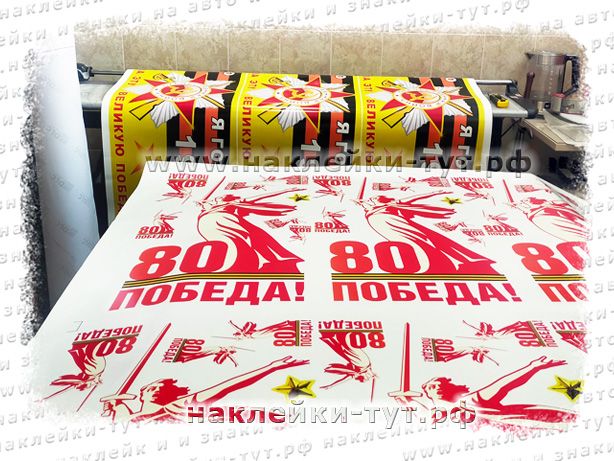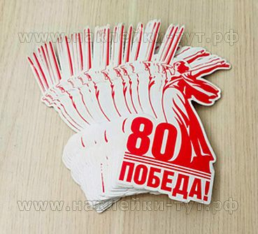 - наклейки оптом с логотипом "80 ПОБЕДА" вырезанные по контуру: