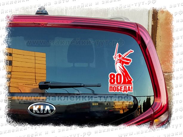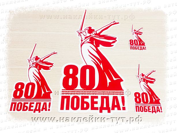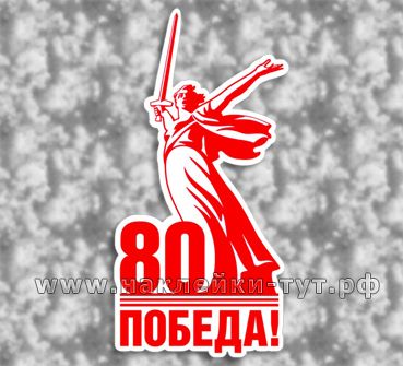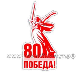 Юбилейная наклейка с логотипом к 80 летию Победы на 9 мая по официальному брендбуку. В логотипе изображена скульптура «Родина-мать зовет!», являющаяся центром памятника «Героям Сталинградской битвы» на Мамаевом кургане в Волгограде. Нашей победе над нацизмом - уже 80 лет! И этот стикер на автомобиль этому подтверждение. Мы не забудем подвиг наших ветеранов - будем помнить его всегда! Наклейки можно клеить на машину, на кузов, на окна автобуса или магазина. Выберите подходящий размер наклейки и оформите заказ на сайте.