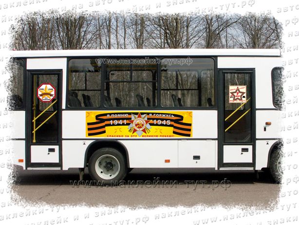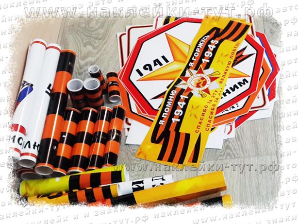 Купить наклейку "я помню, я горжусь..." можно в размерах: 8х32, 11х45, 15х61, 20х81, 25х101, 30х122 и 40х162 см.