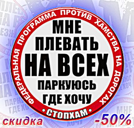 !!! На сайте по акционным ценам заказ оформить - не получится! Чтобы купить наклейки "СтопХам" по ценам с РАСПРОДАЖИ пришлите заявку нам на нашу электронную почту: nakleiki-vsem@yandex.ru с указанием какого диаметра, сколько штук и какого вида (вырезанные или не вырезанные по кругу) вам нужны.