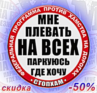 Стикер "СтопХам - мне плевать на всех, паркуюсь где хочу!" - один из безобидных способов позволяющий повлиять на хама, указать ему, на то, что он должен уважать других людей. Но помните, что любой автомобиль - это частная собственность и к тому-же дорогая собственность, поэтому про механические или химические повреждения машине хама забудьте - используйте наклейку "стопхама".