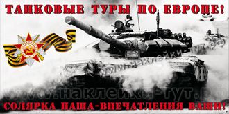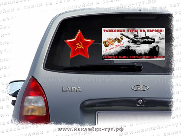 Наклейка на авто "Танковые ТУРЫ по Европе!" (от 20 руб.) создана к юбилею Великой Победы - к 80 летию разгрома фашистской Германии. Мир сходит с ума, переписывая историю, поощряя националистов по всей европе. Россия становится виновником во всех конфликтах и военных обстрелах на Украине. Пришло время стряхнуть пепел с себя и напомнить евросоюзу, что будить медведя зимой не стоит - ответ может быть жестким... Знак на виниле "Солярка наша - впечатления ваши!" Купить наклейку можно в размерах: 10х20 и 15х30 см.