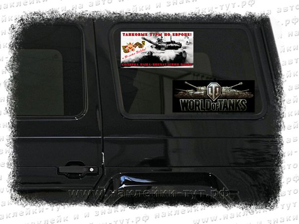 Наклейки на авто (от 50 руб.) WOT для поклонников и фанатов знаменитой компьтерной онлайн-игры WORLD of TANKS (Ворлд Оф Танкс, WoT) c изображением на черном фоне танков и логотипа игры. Вы можете приклеить её на свой автомобиль, на холодильник, ноутбук или куда душа пожелает. Выпускается в размерах: 8х21 или 12х31 см (с белым фоном).