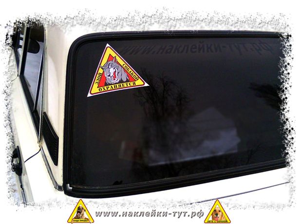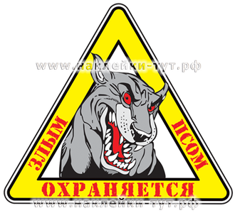 Наклейка "Злым псом охраняется" - универсальна, можно наклеить как на авто, так и на гараж, частный дом, магазин и т.д. Достойное предупреждение для непрошенных гостей, даже, если у Вас нет собаки или она очень маленькая!